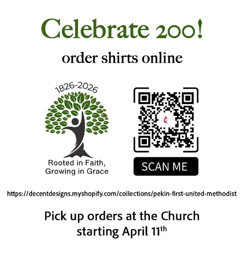 Pekin was founded in 1824 by Jacob Tharp at the foot of Broadway. Just two short years later Methodism became a reality in Pekin with the first organized class by Rev. Jessie Walker. Methodism has always been a part of Pekin! Join in and help us celebrate 200 wonderful years of serving Pekin and the surrounding area.